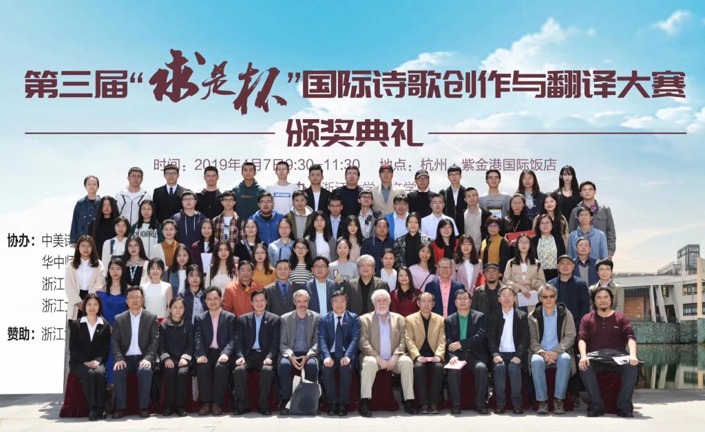 颁奖典礼上,浙江省委宣传部副部长琚朝晖、浙江大学党委副书记邬小撑、澳大利亚著名诗人DennisHaskell、俄罗斯著名诗人YuriKublanovsky、国内著名诗人臧棣、梁晓明、汪剑钊、著名翻译家刘文飞、吴迪、高兴等应邀出席。一等奖的作者、译者悉数到场,并倾情朗诵自己的获奖作品,专家评委现场即兴点评,令在座的诗歌爱好者大呼过瘾。著名翻译家高兴的发言引起大家的共鸣:今天的“求是杯”诗歌大赛对翻译新秀的提掖和奖赏,就是对流弊最好的回答。有很多参赛选手甚至来自会计、物理与光电、政法等和外语不相关的科系。这些朝气蓬勃的后起之秀,无疑将为中国的翻译事业添砖加瓦。