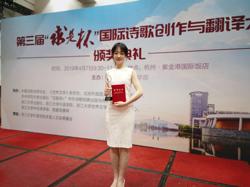 4月7日上午,由浙江大学、中美诗歌诗学协会、北京外国语大学外国文学研究所、《世界文学》杂志社、浙江大学出版社等单位共同举办的第三届“求是杯”国际诗歌创作与翻译大赛在杭州紫金港国际酒店举行颁奖典礼。我校KY开元集团官网入口2018级俄语专业研究生张颖坤同学以翻译作品《十一月挽歌》荣获全国翻译类二等奖。这是我校俄语专业研究生继第二届“求是杯”获得奖项之后又一次获奖。