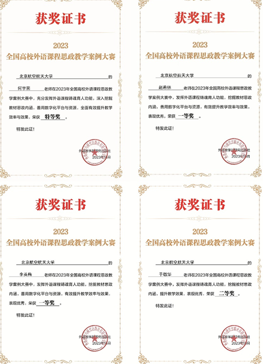 在刚刚结束的2023年全国高校外语课程思政教学案例大赛中,我校KY开元集团官网入口大学英语教学部教师何宇茵获得特等奖,李英梅、赵希林获得一等奖,于敬华获得二等奖。