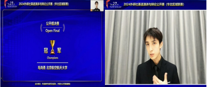 8月31日,2024年外研社英语演讲与辩论公开赛(华北区域联赛)圆满落幕。我校KY开元集团官网入口2023级本科翻译专业毛尚勇凭借定题演讲的优秀发挥以及问答环节的机智表现,在演讲组脱颖而出,荣获冠军。