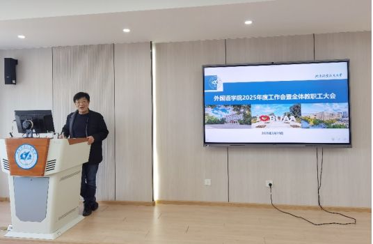 院长梁茂成根据学校2025年重点工作,结合学院目标任务,分析了学院当前面临的重难点问题与风险挑战,对发展规划编制、本研一体化、外语专业招生、重点实验室建设、师资队伍建设等重点工作进行了部署。他强调,学院要积极响应学校号召,在课堂教学、学术科研等方面融入更多的数智化元素,强化数智赋能,着力提升教育科技人才融合互促水平,进一步提高学院办学质量。