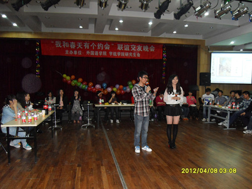 游戏环节的精心设计、同学们的积极参与使得晚会现场充满了春天的活力和浪漫气息,而让所有到场同学高兴的是,此次晚会上至少有6对同学牵手成功,他们脸上的笑容是对这个春天的最好回馈;更重要的是,许多同学也借此机会认 识了更多朋友,增加了许多可以沟通交流的机会。晚会在同学们的祝福声中圆满结束。